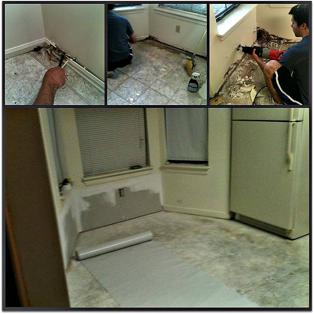 What next on day one? Rip out all of the flooring of course. There was vinyl in the kitchen and entry way and carpet everywhere else. The carpet was relatively new, but I am not a carpet person, stains, pets and smells. No thanks.